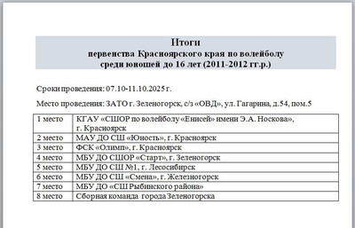 Победителем стала команда КГАУ «СШОР «Енисей» им. Э.А. Носкова». Серебро у МАУ ДО СШ «Юность», бронза — у ФСК «Олимп». Наша команда МБУ ДО СШОР «Старт» показала хороший результат, заняв четвертое место, в шаге от пьедестала! Сборная команда города Зеленогорска — получила бесценный опыт против сильнейших соперников края. Главное — не сдаваться! Ребята, вы молодцы, что боролись до конца. Этот турнир — отличный старт для будущих побед! Благодарим всех за игры и зрелищность! Ждем на новы ... Читать дальше » |